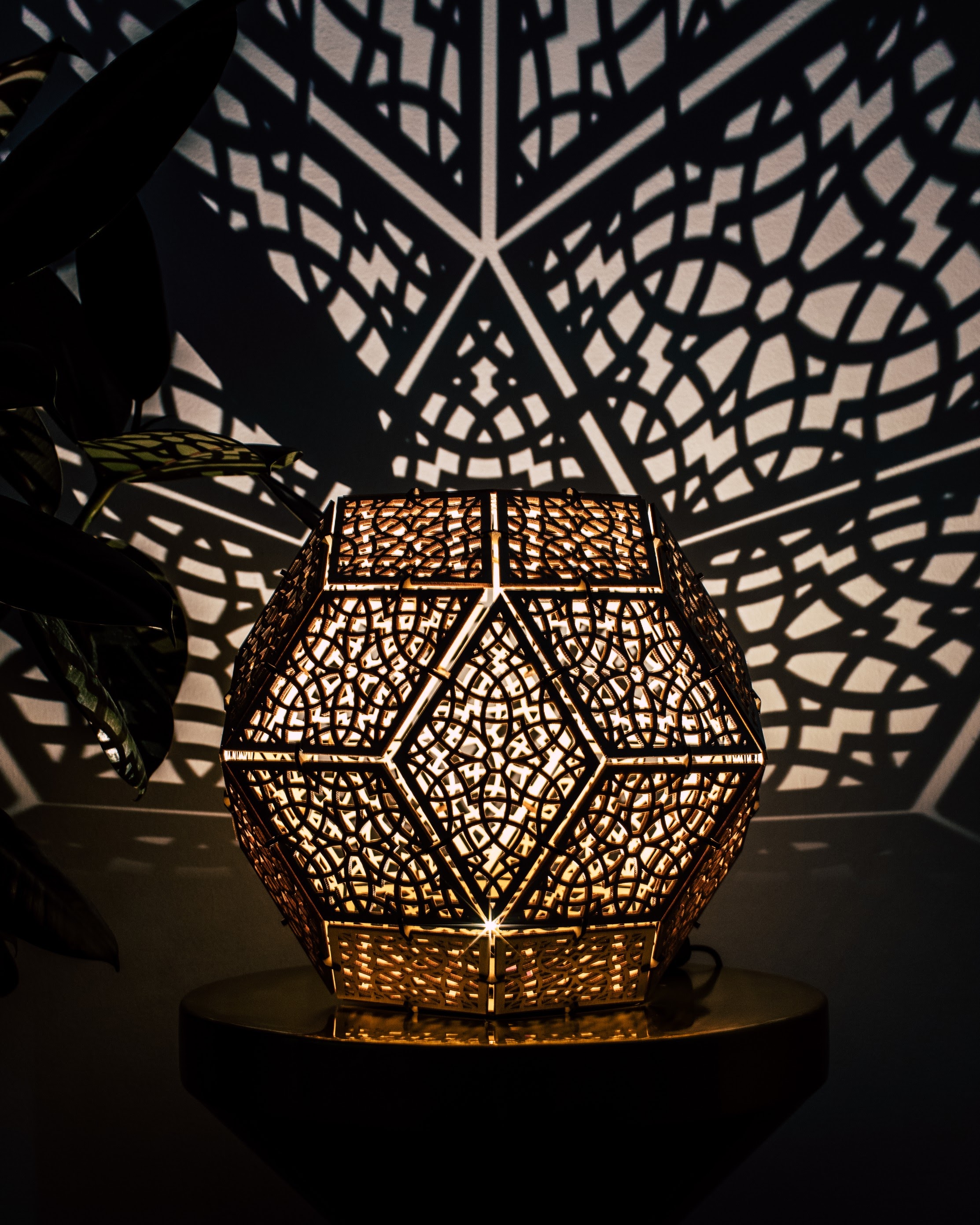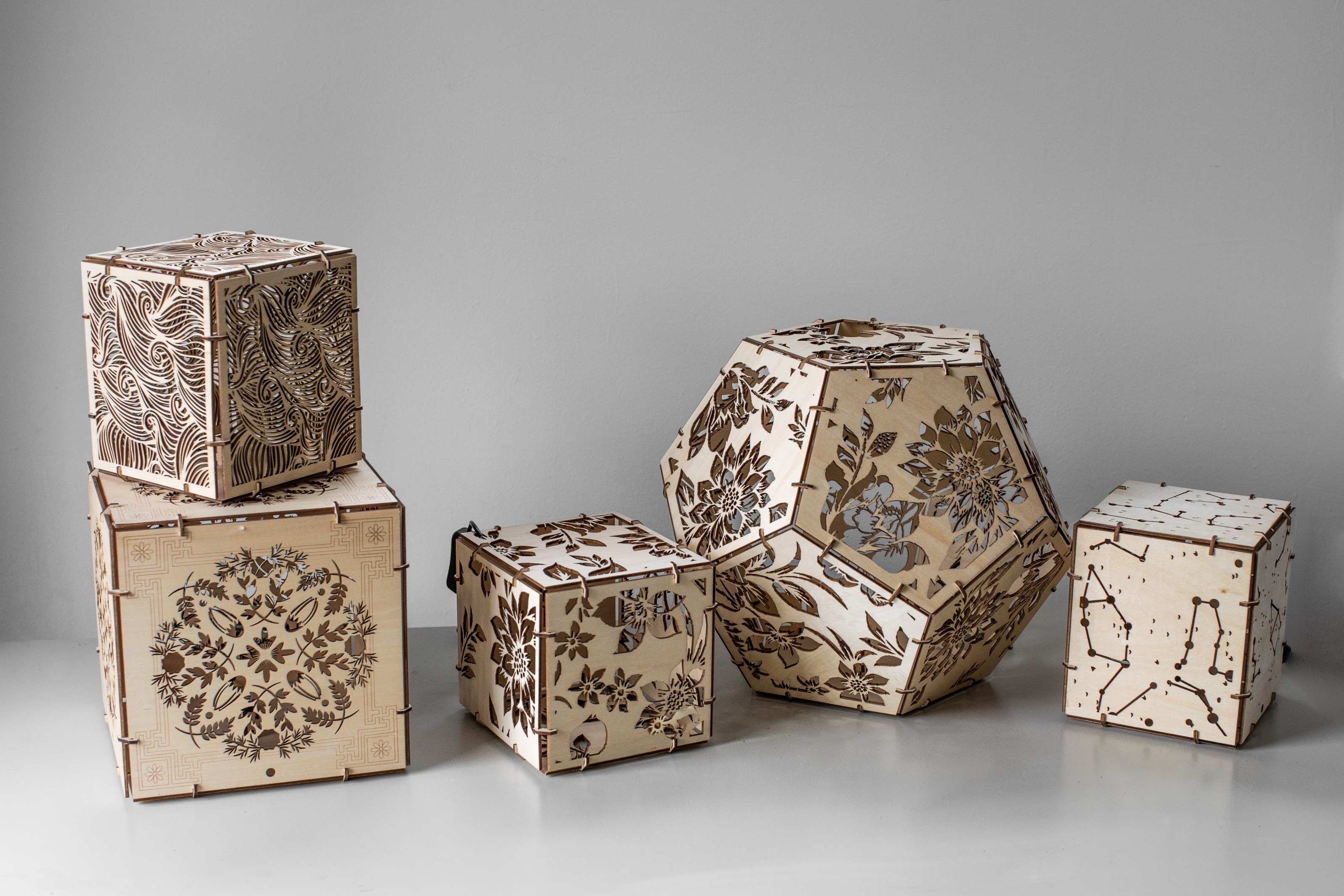 In 2015, I was inspired by the immersive installation by Anila Quayyum Agha, “Intersections”, to create a household version of (what I now call) Shadow Lamps. Beginning as just me, a trial version of an illustration software and a 60W CO2 Laser, I began cutting.